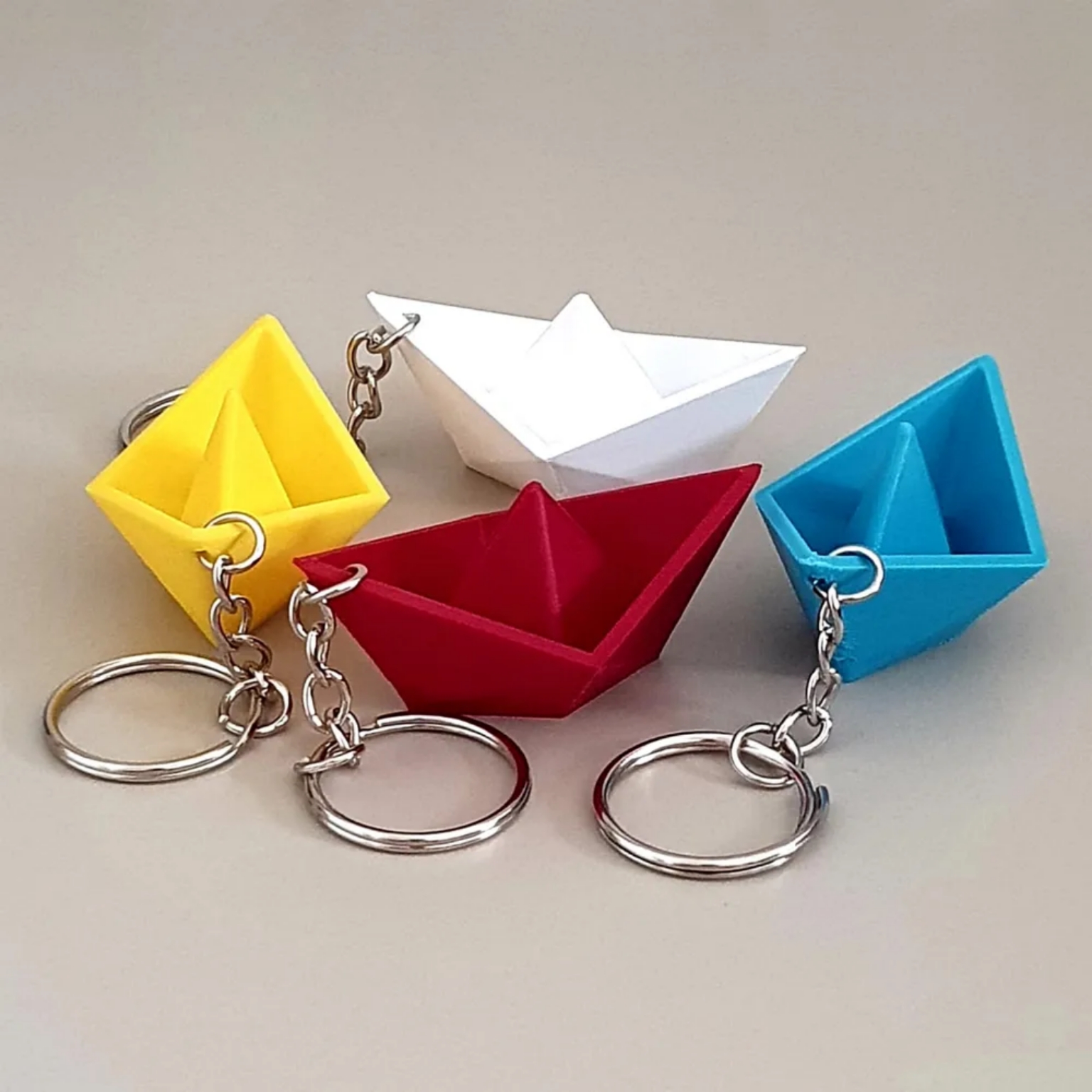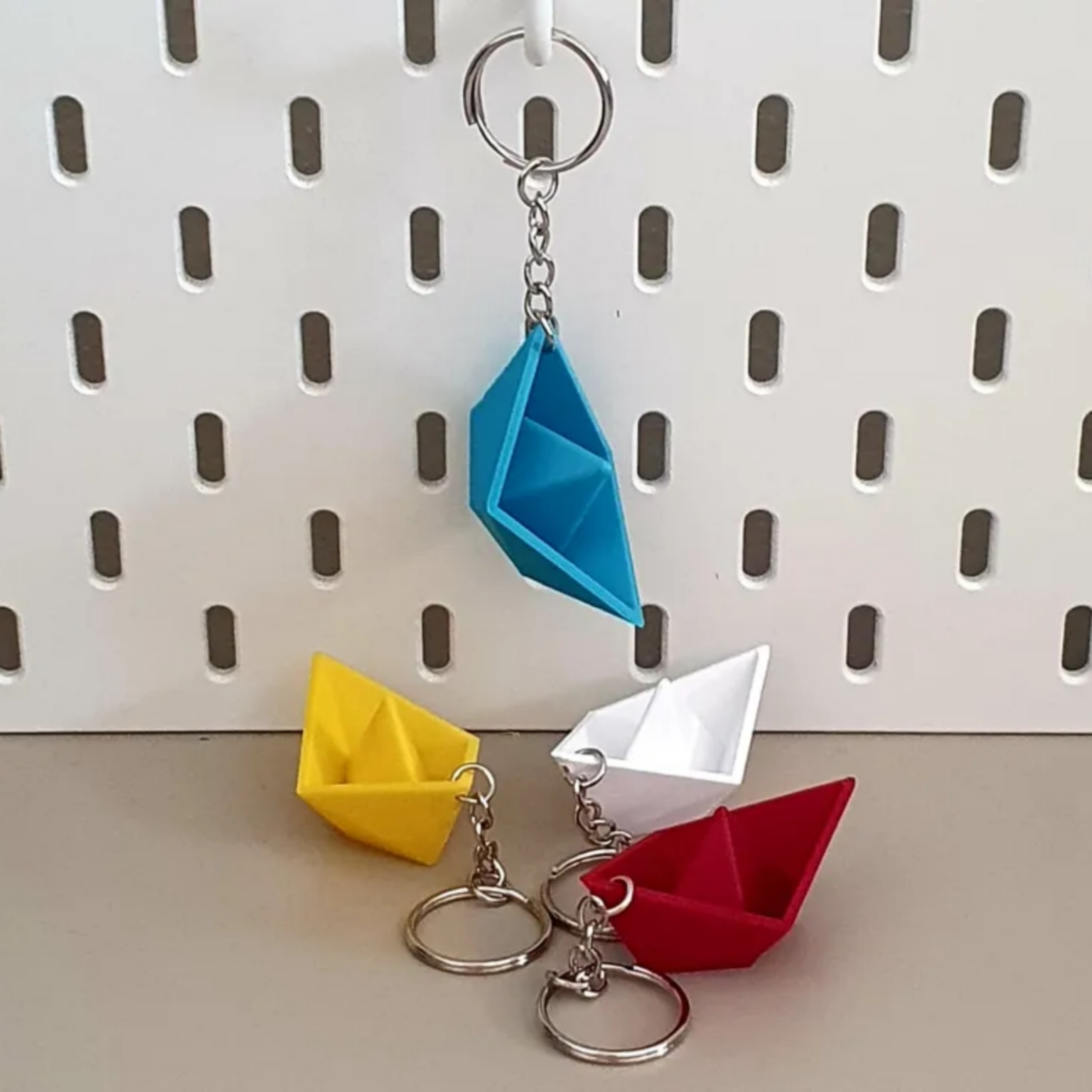 جاکلیدی مدل قایق کاغذی با طراحی فانتزی، ساختهشده از پلاستیک مقاوم و سبک، دارای حلقه و زنجیر فلزی برای اتصال به کلید یا کیف. موجود در رنگبندی متنوع، مناسب برای استفاده روزمره یا هدیهای خاص و نوستالژیک.